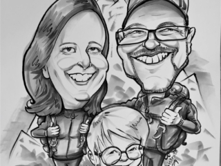 Als Auftragsarbeiten nach Fotos zeichne ich detailliertere Karikaturen und verschicke sie, je nach Wunsch in schwarz-weiß oder Farbe, mit oder ohne Details wie Beruf, Hobby etc… das perfekte Geschenk für Menschen, die ansonsten schon alles haben.