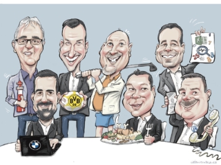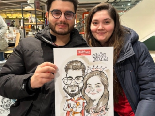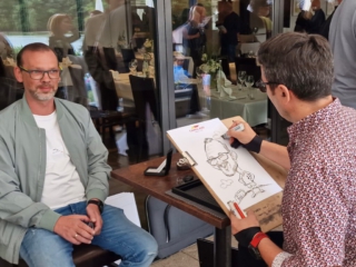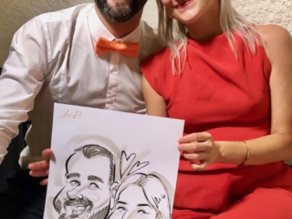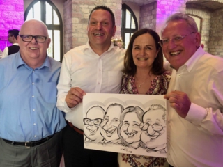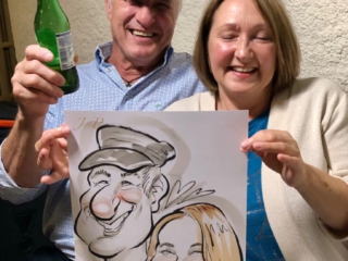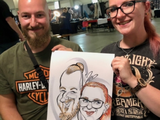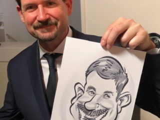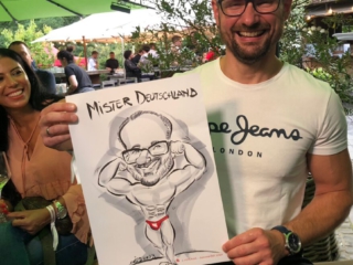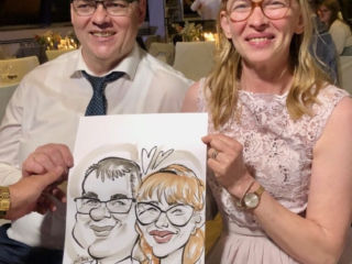 Mit schnellen, auf den Punkt gebrachten Karikaturen mache ich Ihre Veranstaltung unvergesslich für Ihre Gäste oder Kunden, egal ob Geburtstag, Hochzeit, Firmenfeier oder Messe. Livezeichnungen sind Blickfang und Unterhaltung, aber auch bleibende Erinnerungen mit personalisiertem Gastgeschenk oder Werbegeschenk, auf Wunsch gerne im Voraus bedruckt mit Ihrem Firmenlogo. So bleibt Ihr Event noch lange im Gedächtnis.